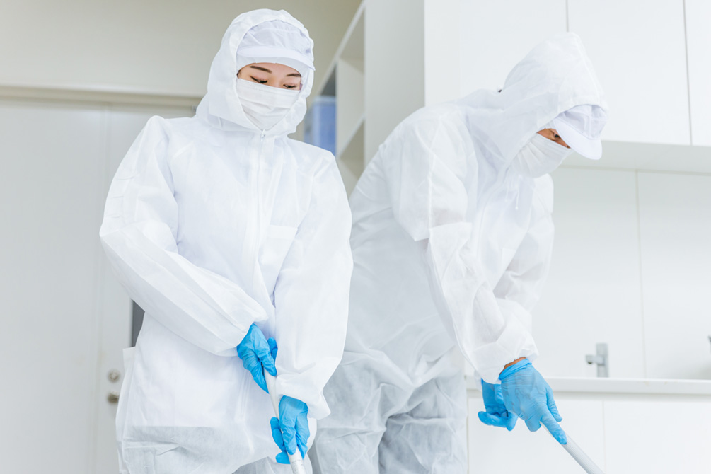 ご遺体の発見現場に残ってしまった臭いや汚れは、通常の清掃では落としきることは困難で、感染症の原因にもなります。当社は特殊な技術、専用資機材でプロが消臭・消毒いたします。ご遺族やご依頼者の秘密厳守を徹底します。